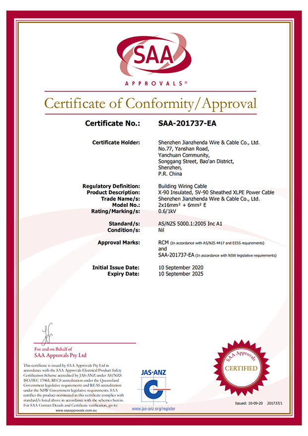 深圳建圳達(dá)電線電纜有限公司,成立于2000年,是一家電線電纜制造商,我們通過了世界各地不同市場的多數(shù)認(rèn)證,如:CCC、RoHS、CB、SAA、TUV、VDE、PSE、BPS、UL、CSA。我們根據(jù)定制產(chǎn)品不斷更新新的認(rèn)證。經(jīng)過數(shù)十年的發(fā)展,我們與來自世界各地的客戶建立了長期的合作關(guān)系。我們曾經(jīng)是菲律賓機場,,柬埔寨的電力站,美國的醫(yī)院,工廠,埃塞俄比亞的水電站項目。我們是一家值得信賴的電線供應(yīng)商。
